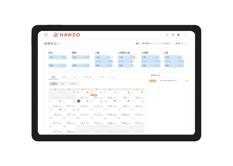 今回連携を開始するGoals社が飲食店向けに提供する「HANZO 人件費」は、AI需要予測による人件費適正化サービスです。売上と客数の予測や、売上に対する最適な必要人員数の算出をAIが自動で行うため、店舗担当者のスキルや経験に左右されずデータに基づいた最適なシフト作成を可能にします。また、AIが算出した必要人員数に沿ってシフトを作成することで、人件費の適正化にも繋がります。
