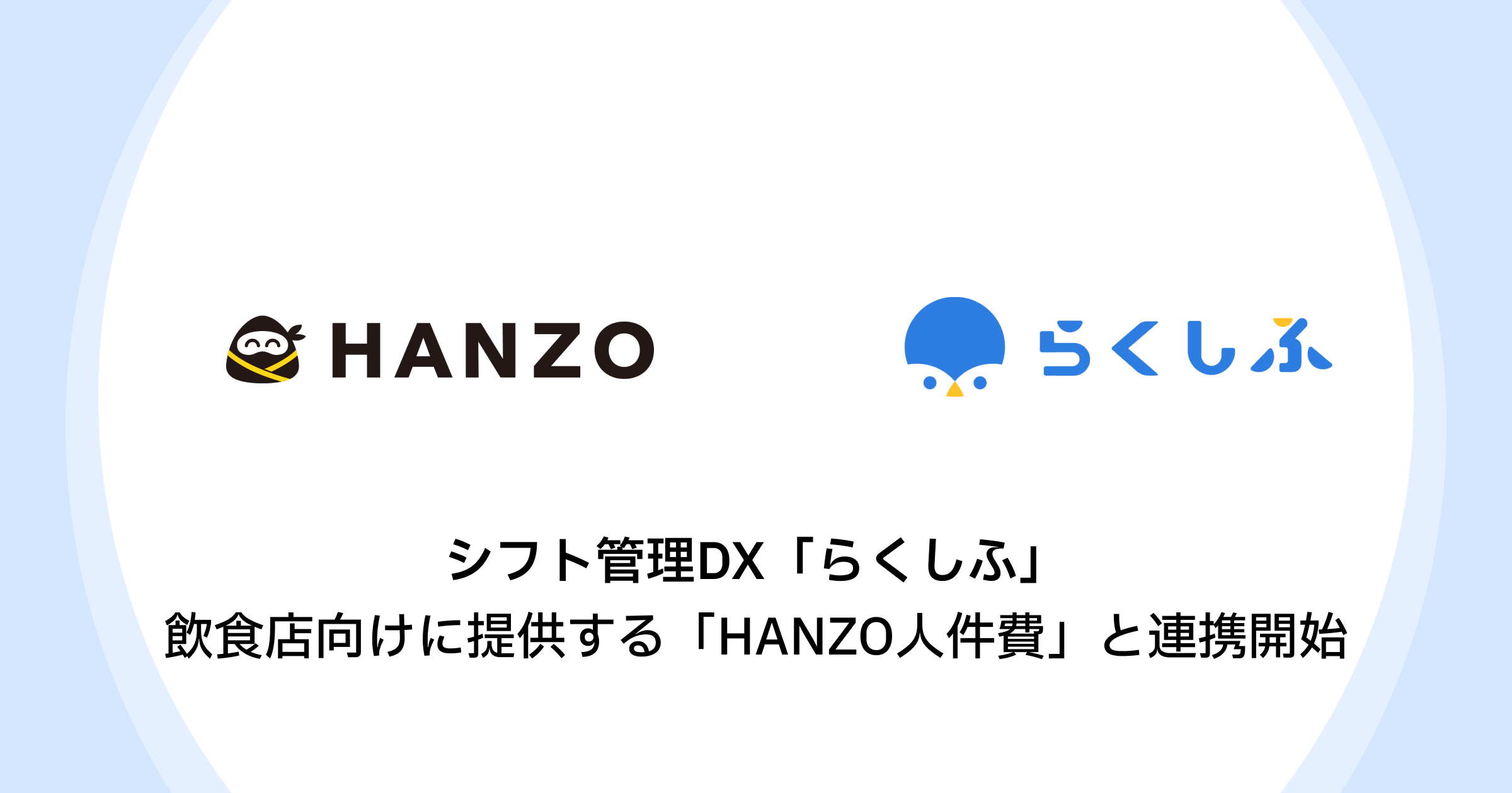 クラウドシフト管理「らくしふ」飲食店向けに提供する「HANZO人件費」と連携開始