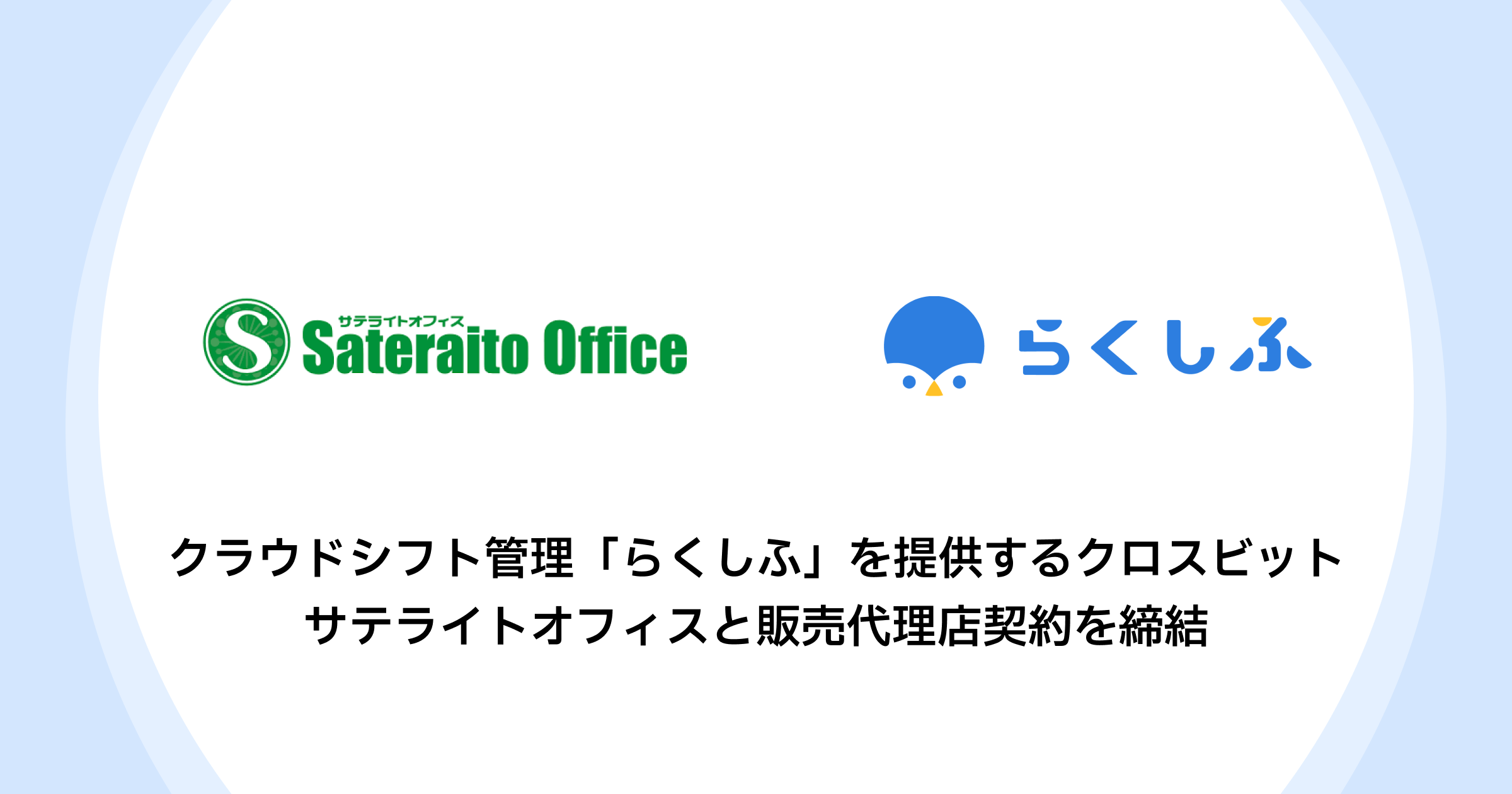 クラウドシフト管理「らくしふ」を提供するクロスビット サテライトオフィスと販売代理店契約を締結