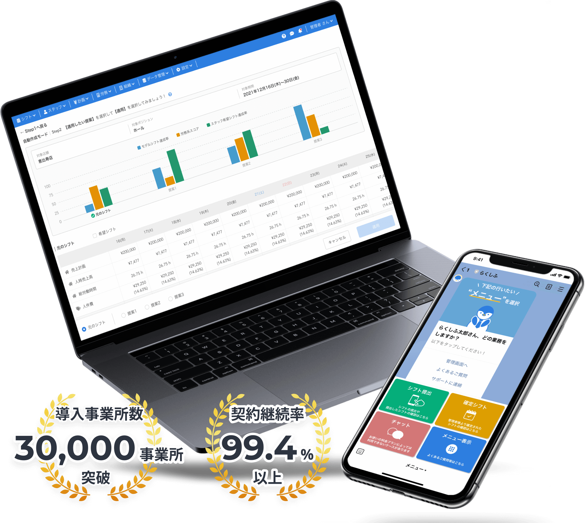 LINEを活用したシェアNo.1(※)クラウドシフト管理システム「らくしふ」